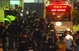 Policiais integrantes do 4º Batalhão da Polícia Militar estão no local. Os rebeliados garantiram que caso as autoridades entrassem no presídio, os reféns iriam ser assassinados. Mesmo diante da ameaça dos apenados, os policiais entraram na casa de detenção, juntamente com uma equipe do Corpo de Bombeiro para controlar as chamas.