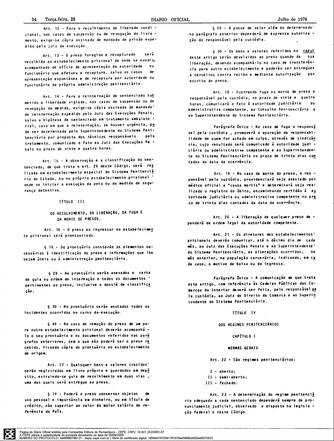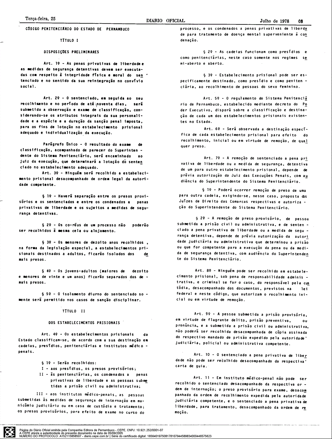 CÓDIGO PENITENCIÁRIO DE PERNAMBUCO