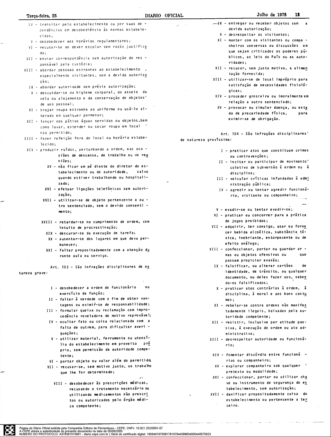 -REGULAMENTO DO SISTEMA PENITENCIÁRIO DE PERNAMBUCO DECRETO Nº 2404 DE 27 DE AGOSTO DE 1971