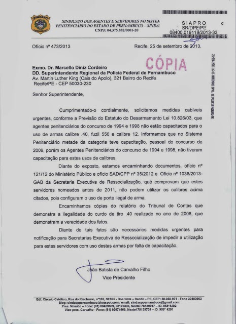 O Sindicato realizou algumas denúncias a Polícia Federal e ao Ministério Público relatando a falta de capacitação técnica destes servidores. Anteriormente, tinha sido realizado a capacitação técnica de vários destes servidores. O Sindicato solicitou ao Ministério Público o acompanhamento sobre a validade e garantia deste curso dentro das normais exigidas pelo Exército e Polícia Federal.